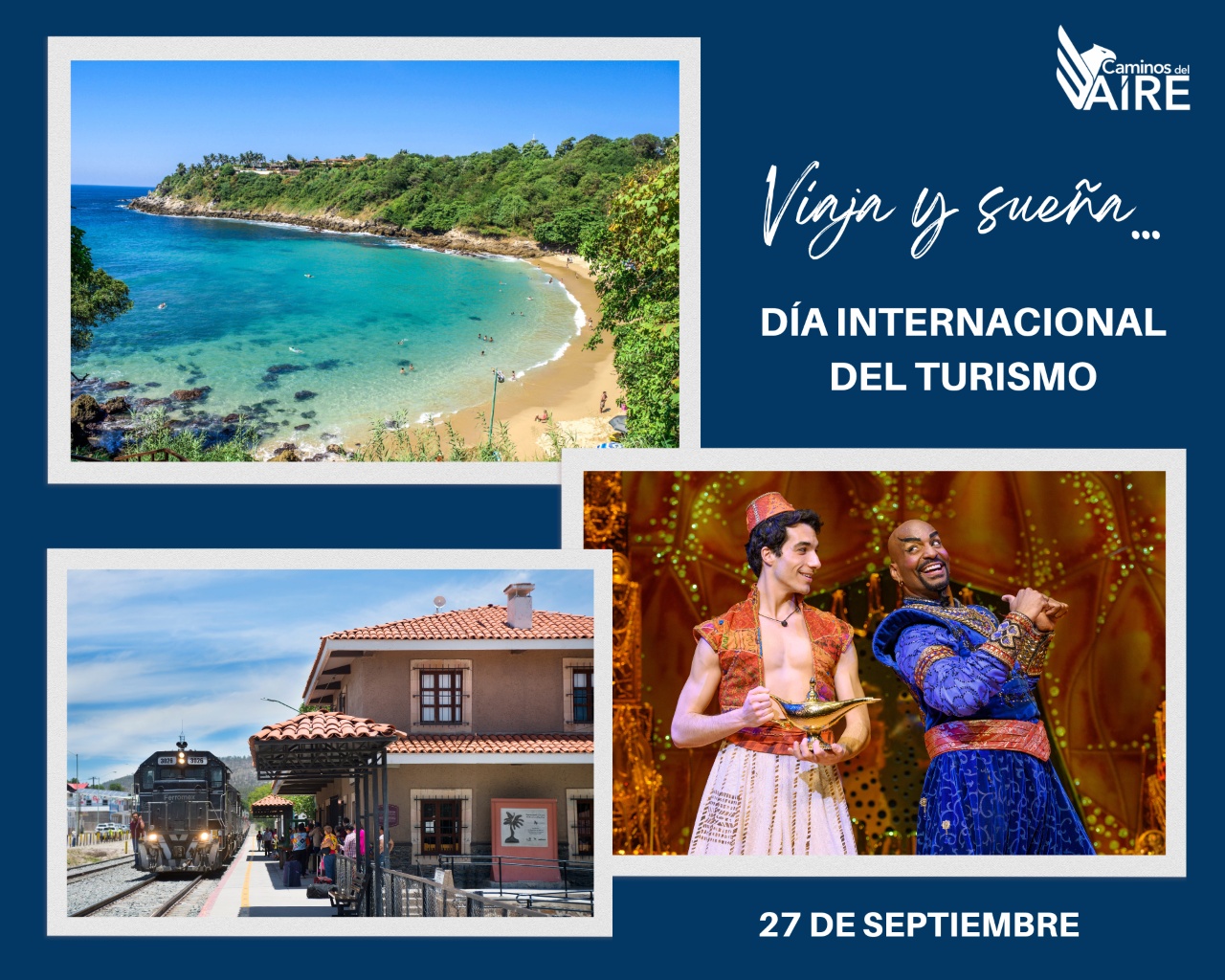 Viaja y Sueña… En la imagen se observa la “Playa Caballo”, ubicada en Puerto Vallarta, Jalisco; el Ferrocarril el “Chepe” en Chihuahua y el musical “Aladdín” que se presenta en el teatro Coliseum de...