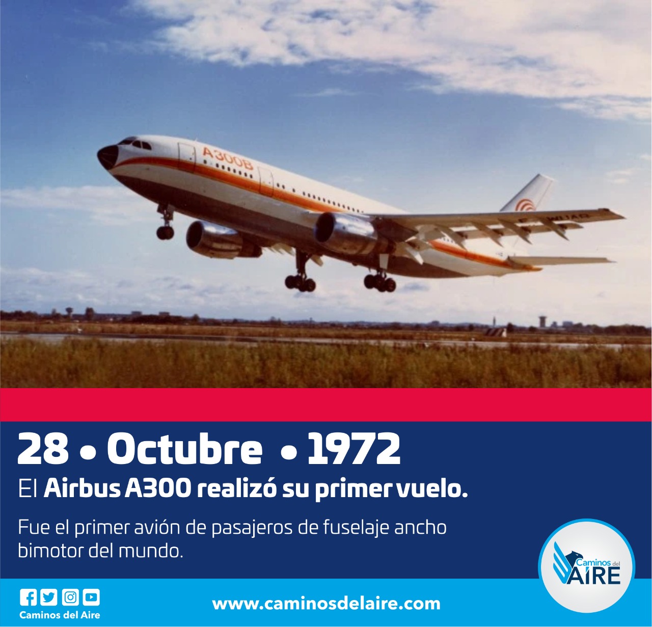 PRIMER VUELO DEL AIRBUS A300 por Caminos del Aire · 28 octubre, 2025 Un día como hoy 28 de octubre pero de 1972, el Airbus A300 realizó su primer vuelo.