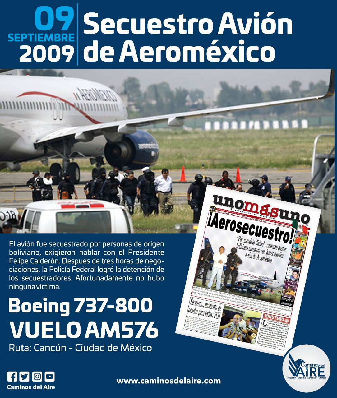 Un día como hoy 9 de Septiembre pero de 2009, un grupo de hombres de origen boliviano tomaron el control del vuelo AM576 de AeroMéxico. El líder del grupo irruptor amenazó con hacer estallar...