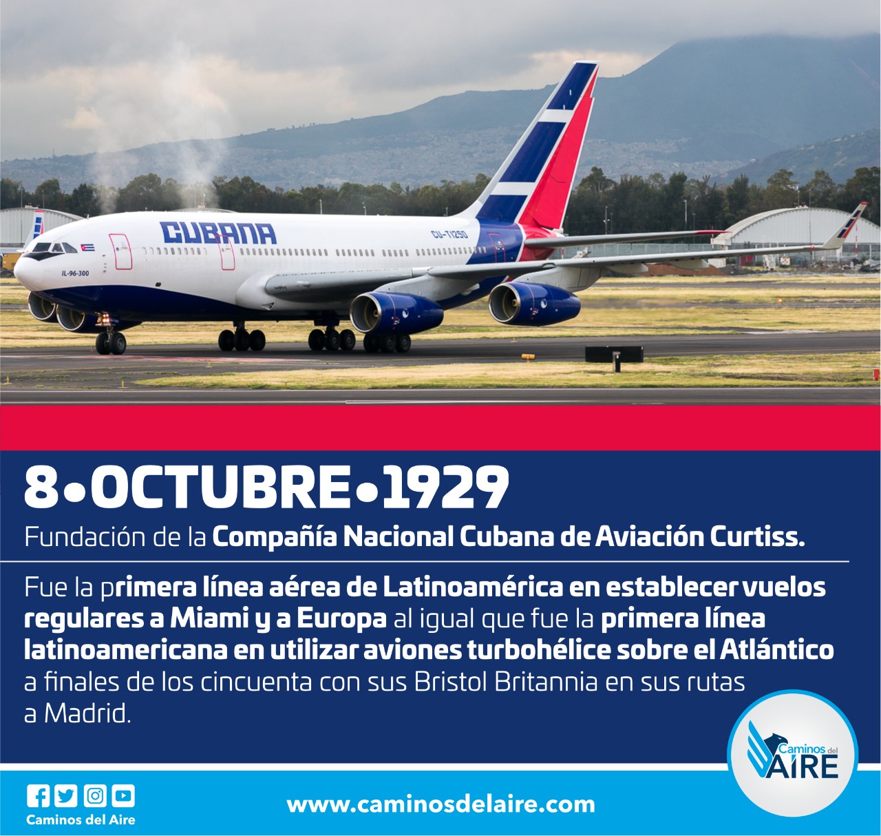 Un día como hoy 8 de Octubre pero de 1929, fue fundada la Compañía Cubana de Aviación, como Compañía Nacional Cubana de Aviación Curtiss.